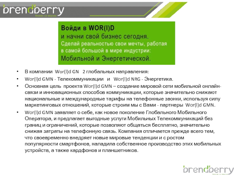 Слайд 7В компании Wor(l)d GN 2 глобальных направления: