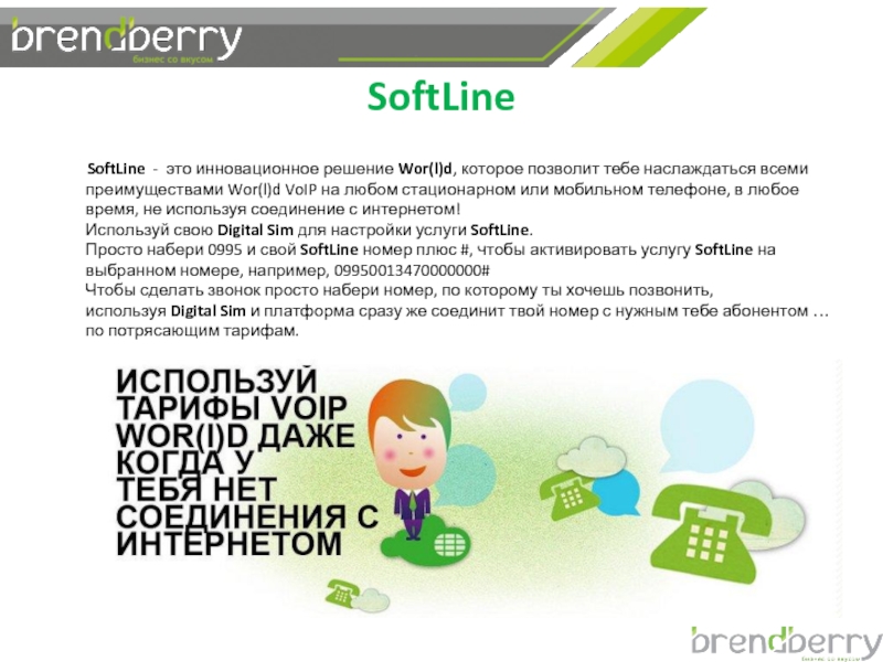 Просто набери 0995 и свой SoftLine номер плюс #, чтобы активировать услугу SoftLine на выбранном номере, например, 09950013470000000#