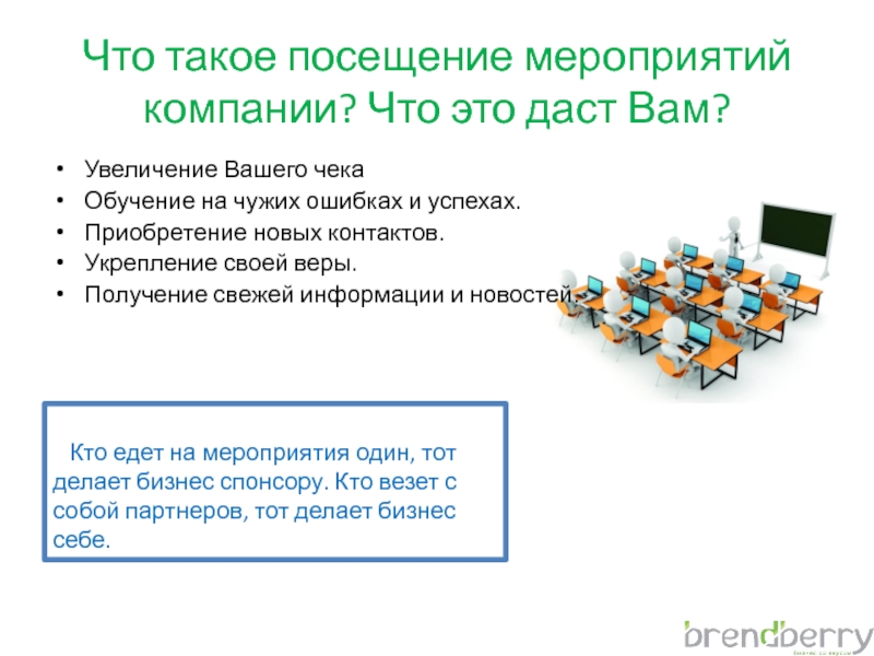 Слайд 56Что такое посещение мероприятий компании? Что это даст Вам?