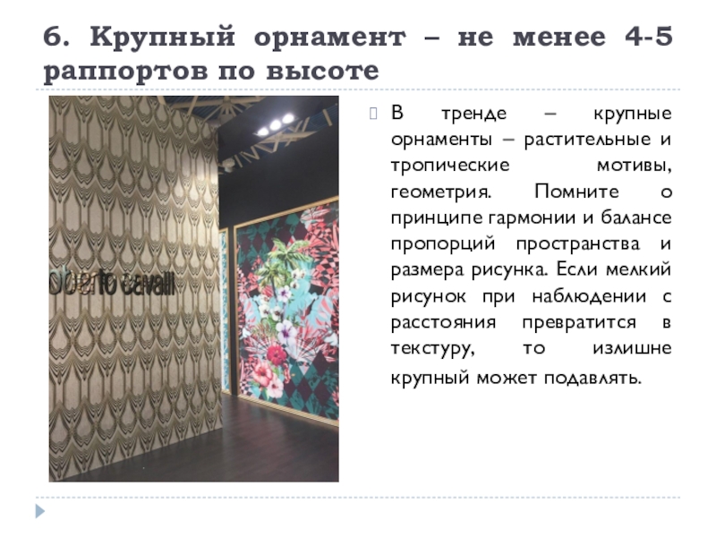 6. Крупный орнамент – не менее 4-5 раппортов по высотеВ тренде – крупные орнаменты – растительные и