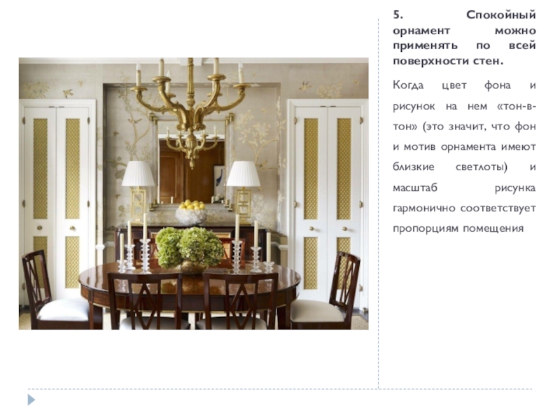 Слайд 75. Спокойный орнамент можно применять по всей поверхности стен.