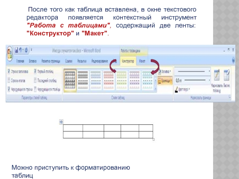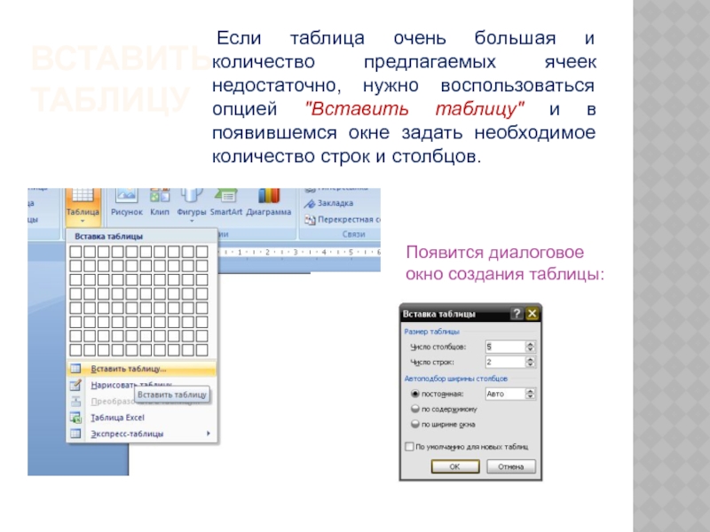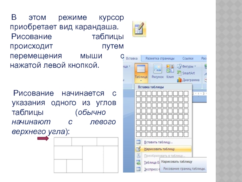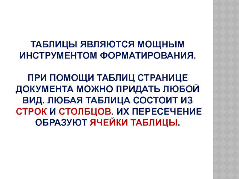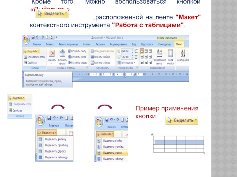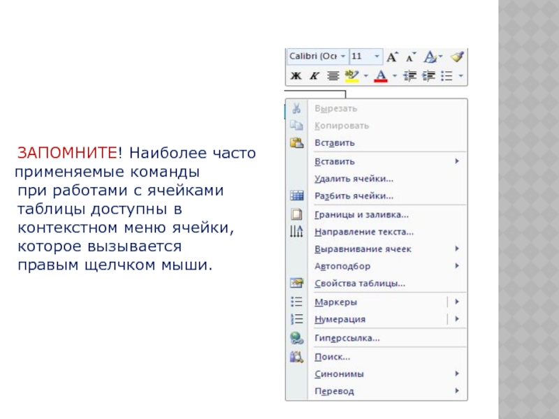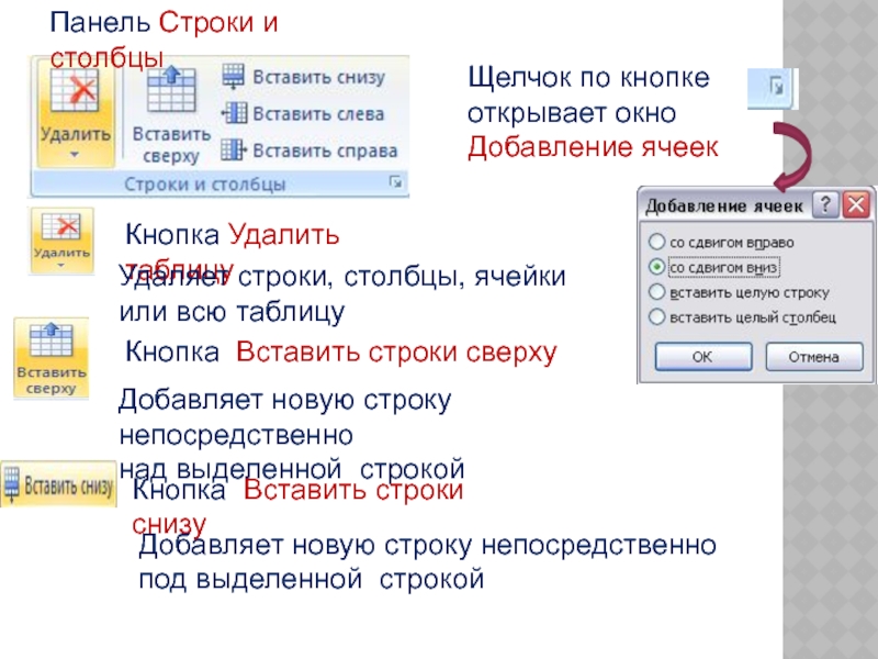 Разбивает одну таблицу на две таб-лицы. Выделенная строка станет первой строкой второй таблицы