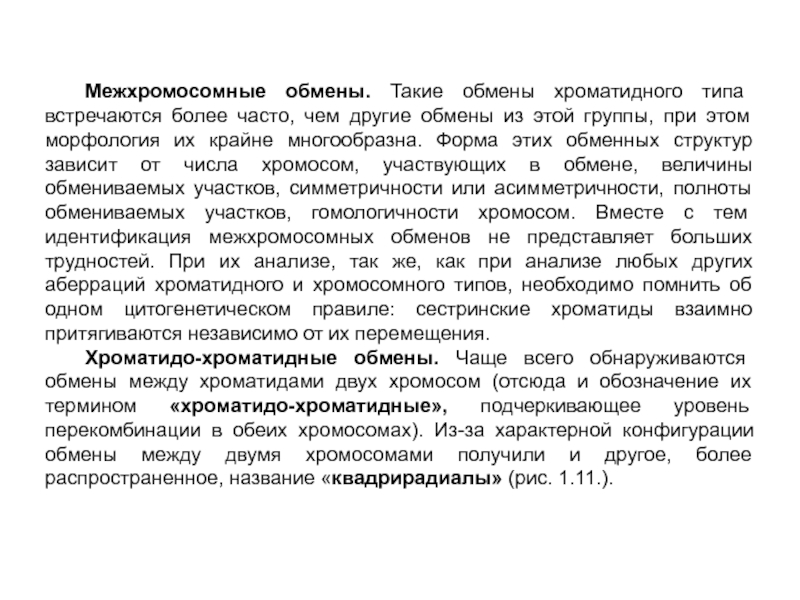 Межхромосомные обмены встречаются довольно часто, в особенности при исследовании