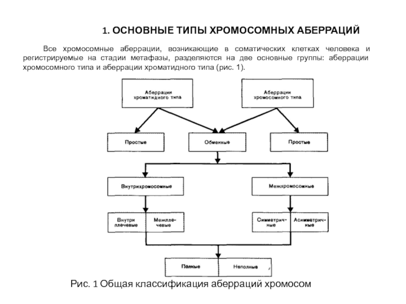основные группы: аберрации хромосомного типа и аберрации хроматидного типа (рис. 1).
