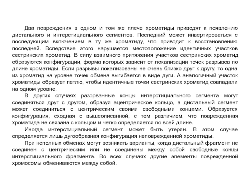 Слайд 15Два повреждения в одном и том же плече хроматиды приводят