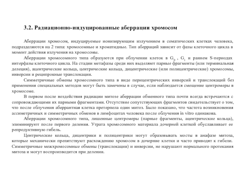 Слайд 363.2. Радиационно-индуцированные аберрации хромосом
