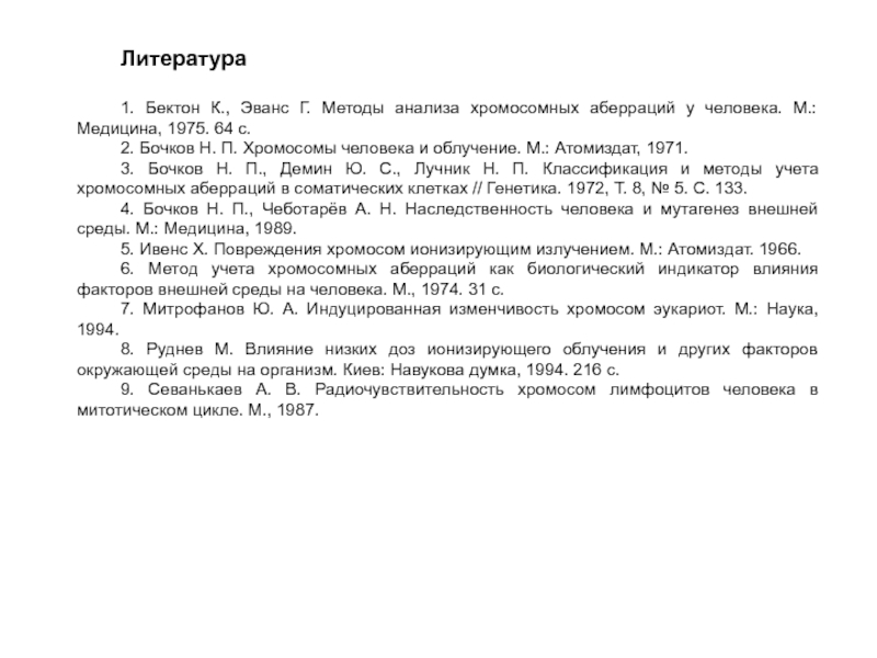 4. Дубинин Н. П. Молекулярная генетика и действие излучений на наследственность. - М.: Атомиздат, 1963.