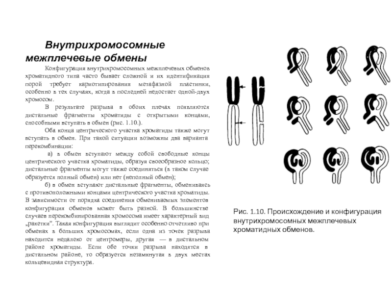 Рис.1.8. Происхождение внутрихроматидных внутриплечевых обменов и их конфигурация.