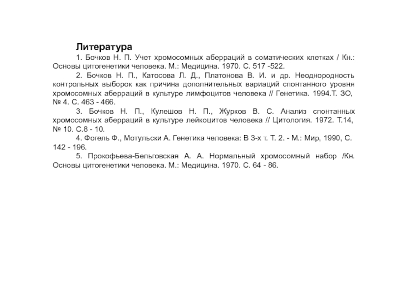 10. Фогель Ф., Мотульски А. Генетика человека: В 3-х т. Т. 2 - М.: Мир, 1990. - С.249-264.