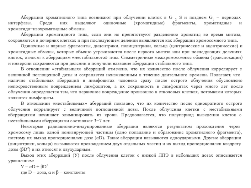 Слайд 1Радиационно-индуцированные аберрации хромосом