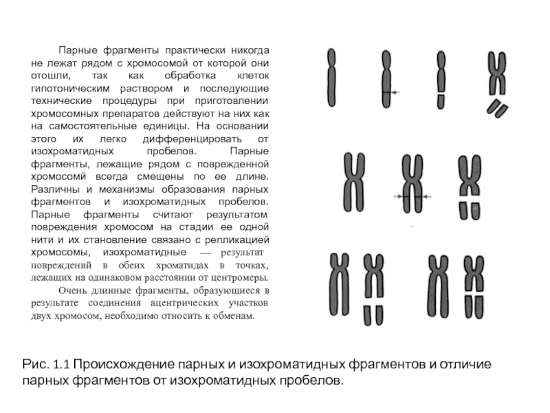 Слайд 7Рис. 1.1 Происхождение парных и изохроматидных фрагментов и отличие парных
