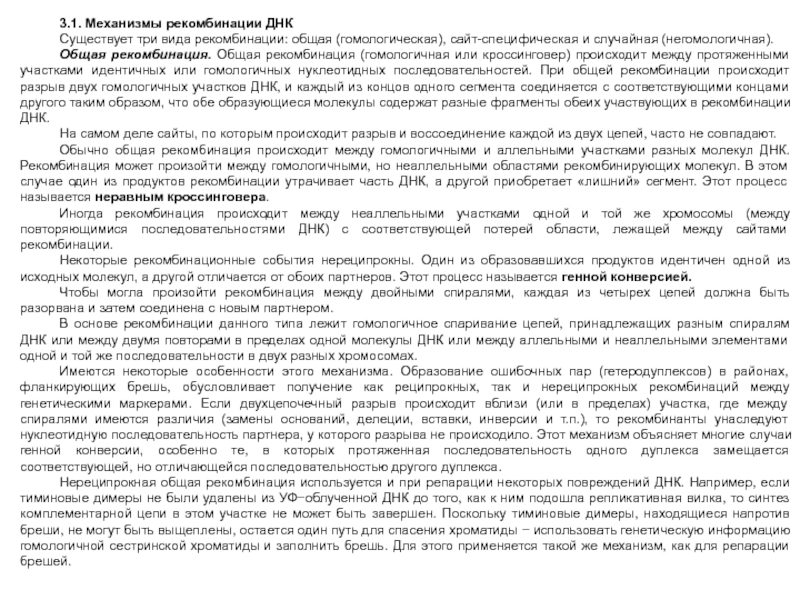 Слайд 343.1. Механизмы рекомбинации ДНК