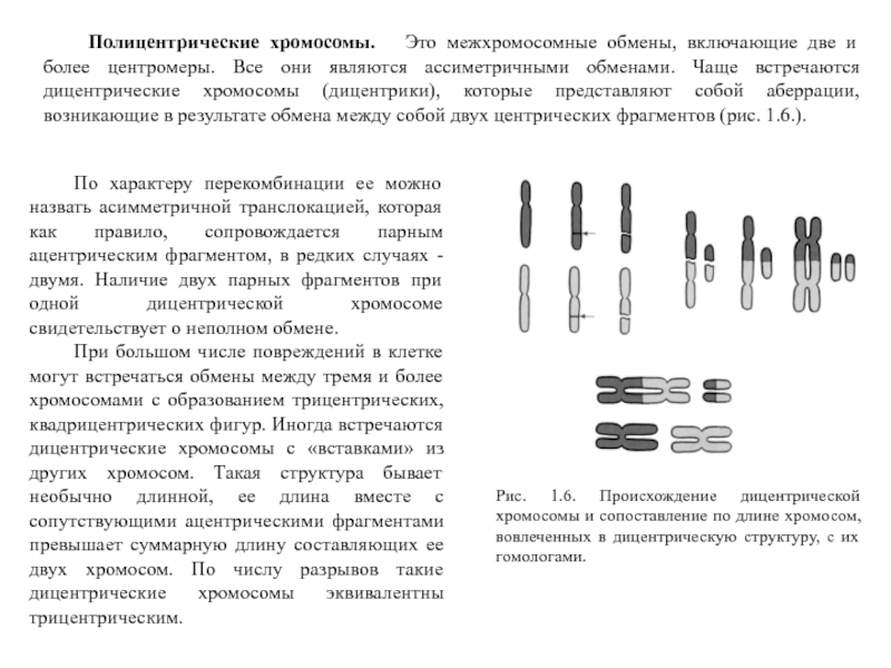 Слайд 12Полицентрические хромосомы. Это межхромосомные обмены, включающие две и более