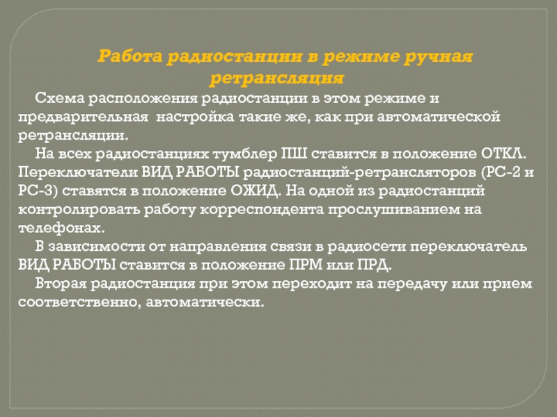 Слайд 18Работа радиостанции в режиме ручная ретрансляция