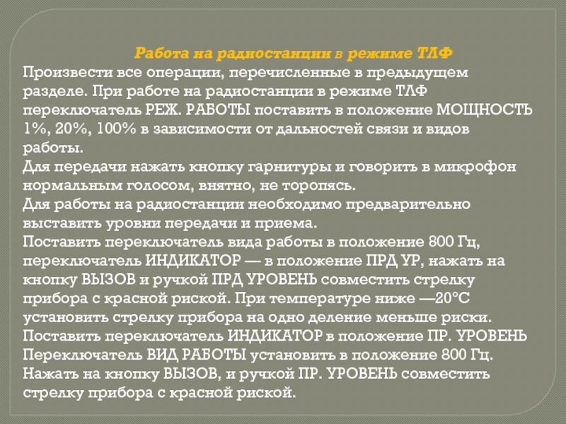 Слайд 14 Работа на радиостанции в режиме ТЛФ