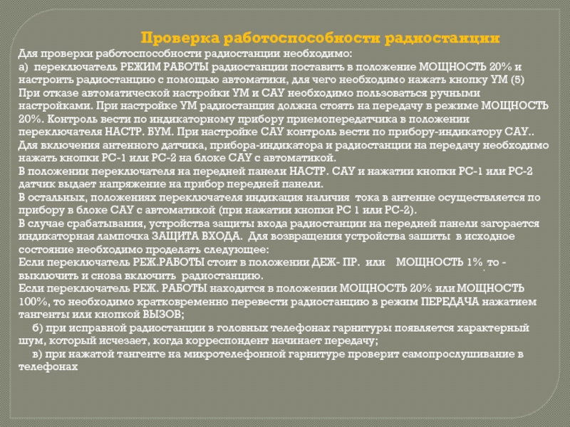 Слайд 13 Работа на радиостанции в режиме ДЕЖУРНЫЙ ПРИЕМ