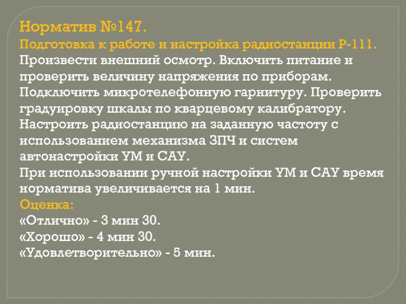 При использовании ручной настройки УМ и САУ время норматива увеличивается на 1 мин.