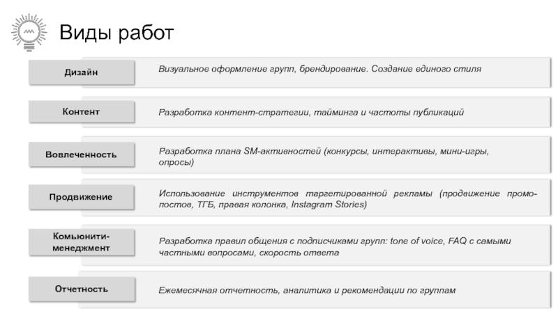 Слайд 27Виды работ