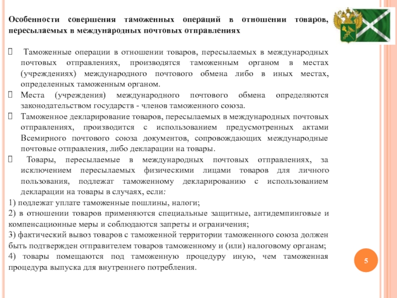 "Соглашение об особенностях таможенных операций в отношении товаров, пересылаемых в международных почтовых отправлениях" (Заключено в г. Санкт-Петербурге 18.06.2010) (ред. от 08.05.2015)