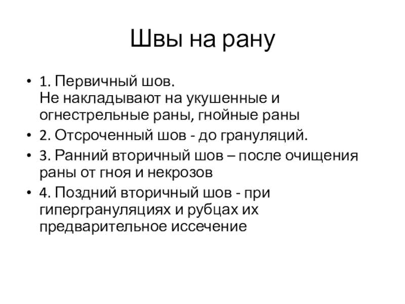 4. Поздний вторичный шов - при гипергрануляциях и рубцах их предварительное иссечение