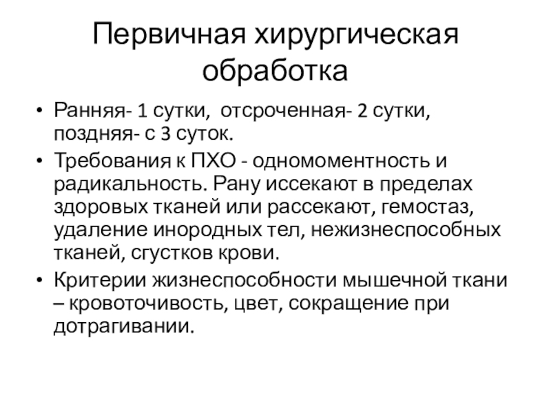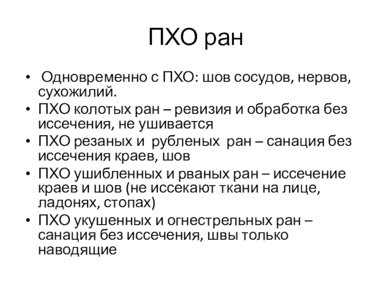 ПХО ушибленных и рваных ран – иссечение краев и шов (не иссекают ткани на лице, ладонях, стопах)