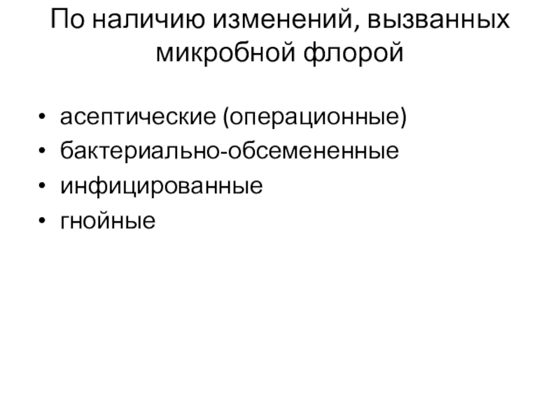 Слайд 6По наличию изменений, вызванных микробной флорой