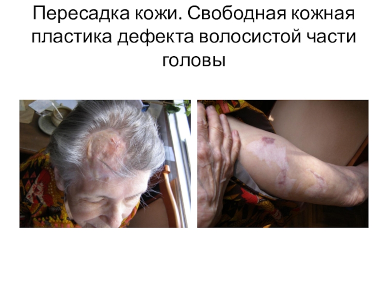 Слайд 27Пересадка кожи. Свободная кожная пластика дефекта волосистой части головы