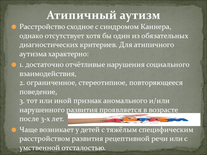 РАС - расстройства аутистического спектра. Среди аутистических расстройств есть строго
