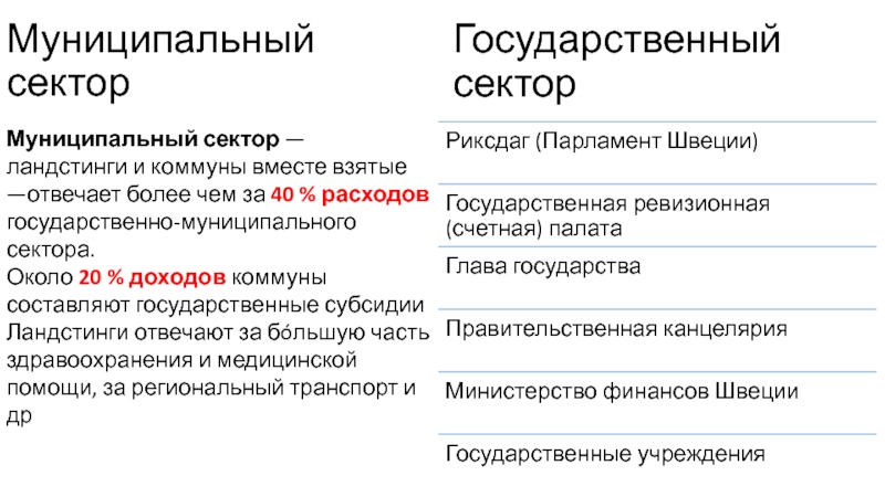 Два уровня местных бюджетов — ландстингов (20) и коммун (290)