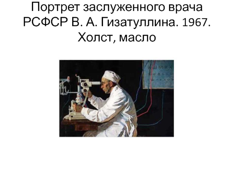 Слайд 3Портрет заслуженного врача РСФСР В. А. Гизатуллина. 1967. Холст, масло