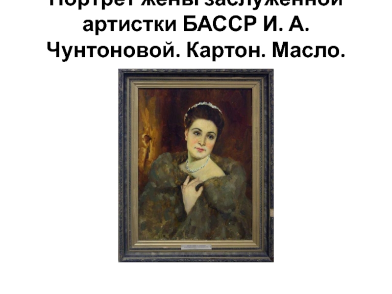 Слайд 17Портрет жены заслуженной артистки БАССР И. А. Чунтоновой. Картон. Масло.