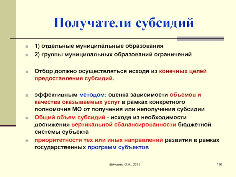 объемов и качества оказываемых услуг в рамках конкретного полномочия МО от получения или неполучения субсидии
