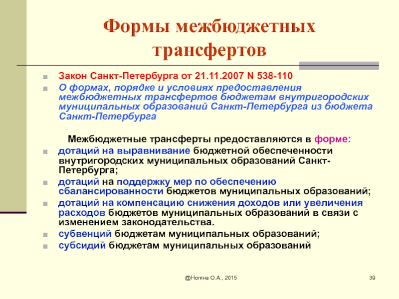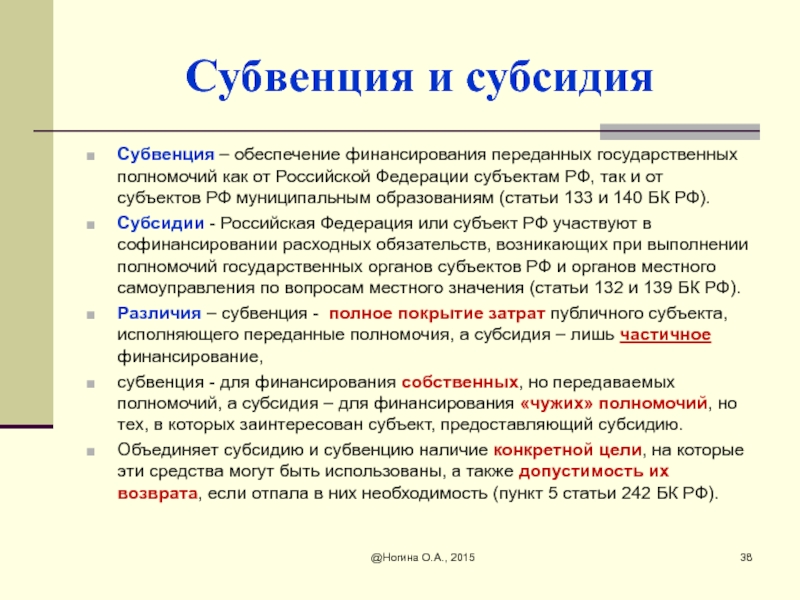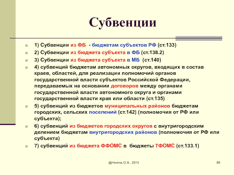 субъекта РФ понимаются межбюджетные трансферты, предоставляемые бюджетам муниципальных образований в