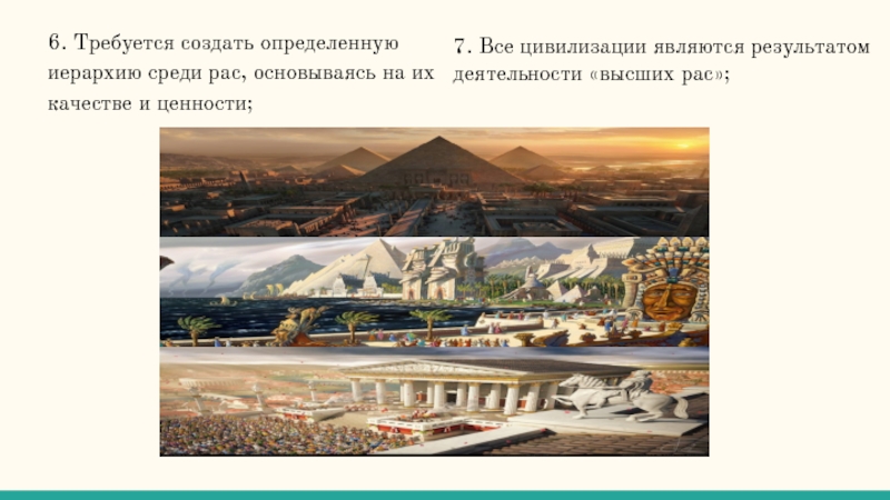 7. Все цивилизации являются результатом деятельности «высших рас»;
