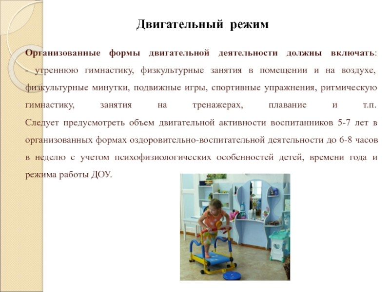 Слайд 12Организованные формы двигательной деятельности должны включать: