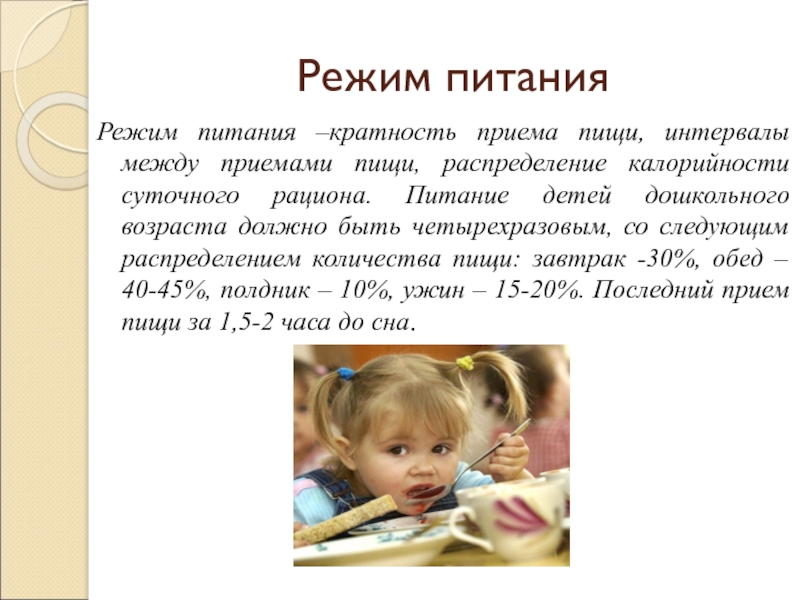 Режим питания –кратность приема пищи, интервалы между приемами пищи,