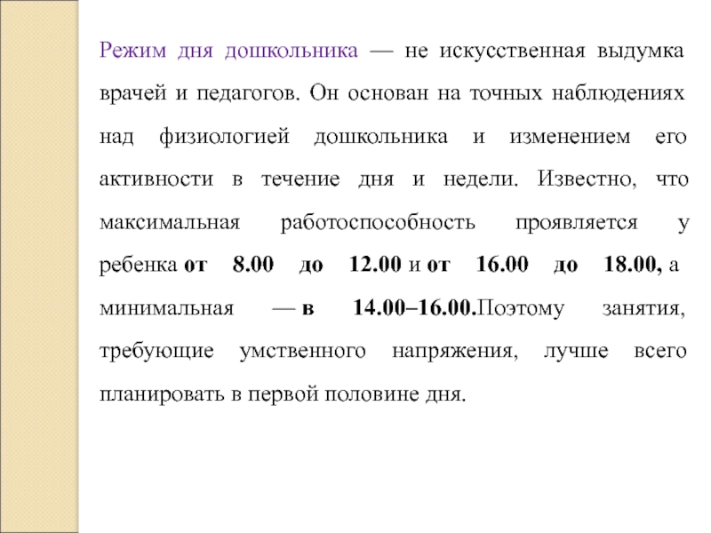 Слайд 19Режим дня дошкольника — не искусственная выдумка врачей и педагогов.