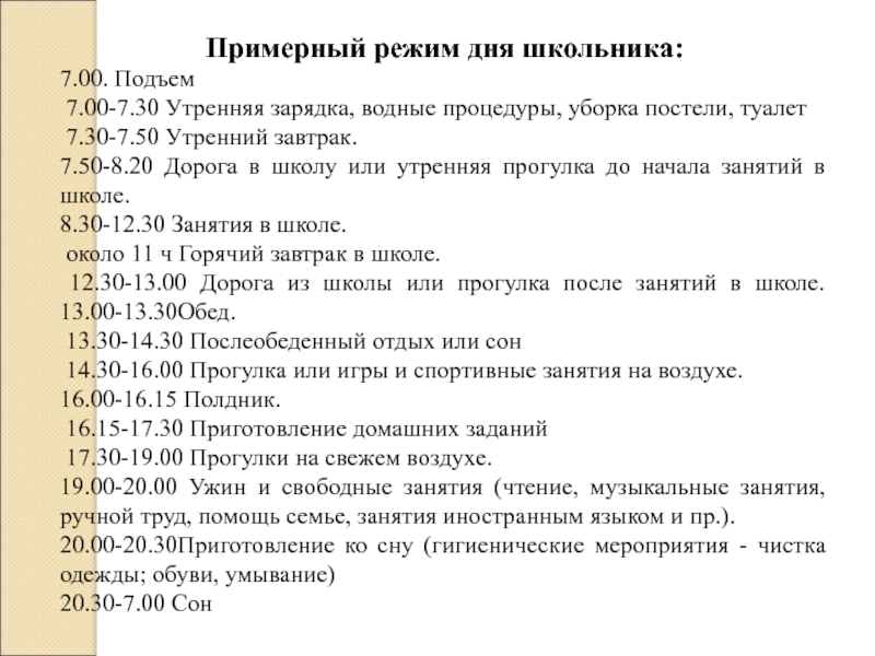 19.00-20.00 Ужин и свободные занятия (чтение, музыкальные занятия, ручной труд, помощь семье, занятия иностранным языком и пр.).