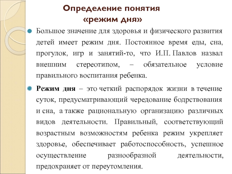 и занятий-то, что И.П. Павлов назвал внешним стереотипом, – обязательное условие правильного воспитания ребенка.