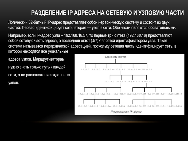 Слайд 5РАЗДЕЛЕНИЕ IP АДРЕСА НА СЕТЕВУЮ И УЗЛОВУЮ ЧАСТИ
