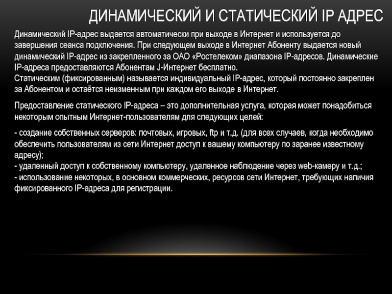 Слайд 18ДИНАМИЧЕСКИЙ И СТАТИЧЕСКИЙ IP АДРЕС