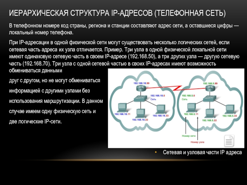 Слайд 6ИЕРАРХИЧЕСКАЯ СТРУКТУРА IP-АДРЕСОВ (ТЕЛЕФОННАЯ СЕТЬ)