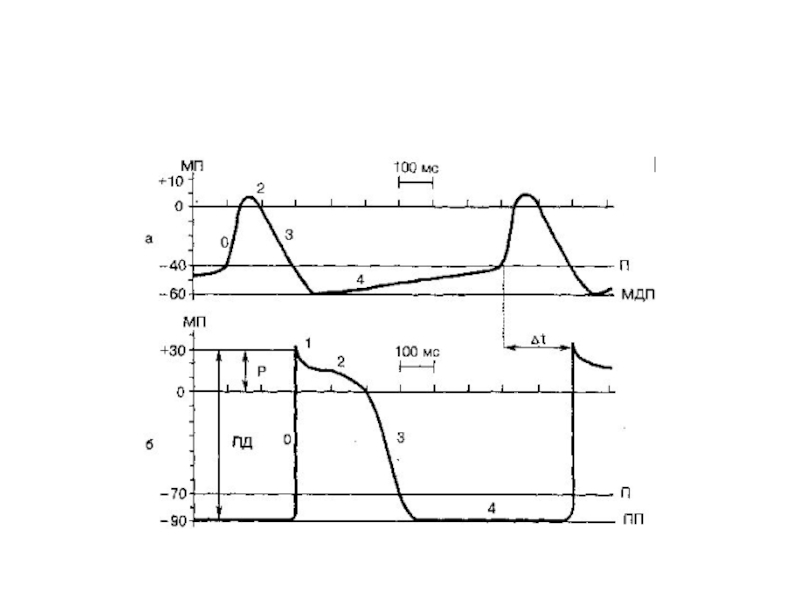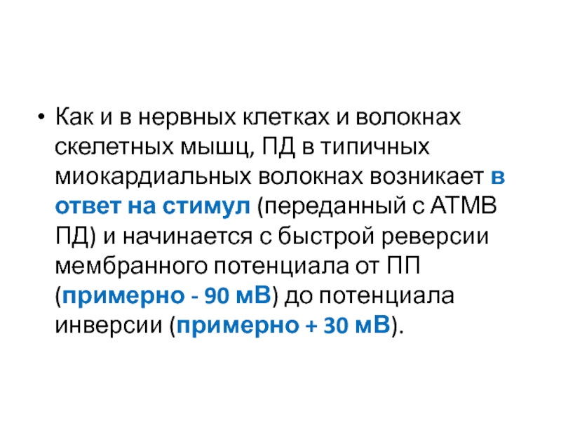 ПД атипичных мышечных волокон – отличается отсутствием устойчивого уровня ПП. Эти клетки спонтанно деполяризуются до критического уровня.