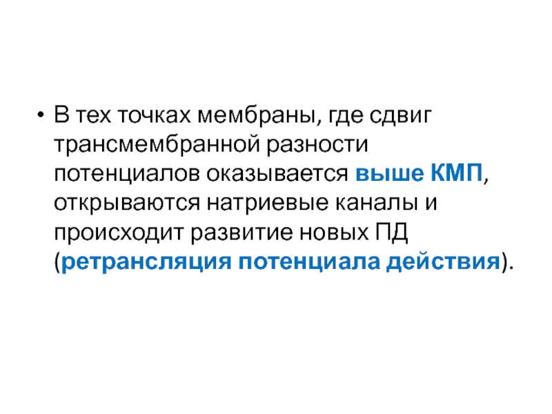 В тех точках мембраны, где сдвиг трансмембранной разности потенциалов оказывается выше КМП, открываются натриевые каналы и происходит