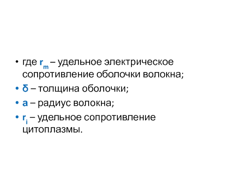 где rm – удельное электрическое сопротивление оболочки волокна; δ – толщина оболочки; а – радиус волокна; ri