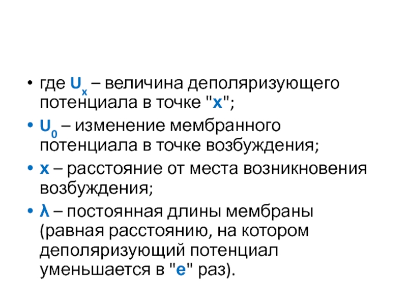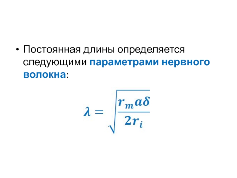 λ – постоянная длины мембраны (равная расстоянию, на котором деполяризующий потенциал уменьшается в "е" раз).