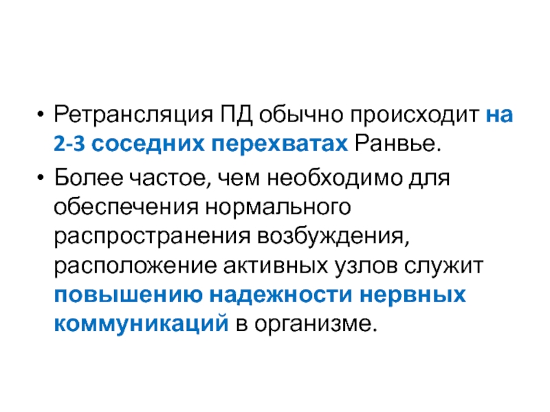 На всем протяжении нервного волокна ПД имеют одинаковую амплитуду, но