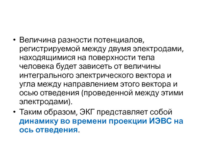 Таким образом, ЭКГ представляет собой динамику во времени проекции ИЭВС на ось отведения.
