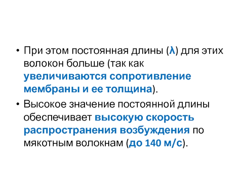 Чем больше константа длины мембраны, тем меньше затухание и выше скорость распространения нервного импульса.Величина λ тем больше,