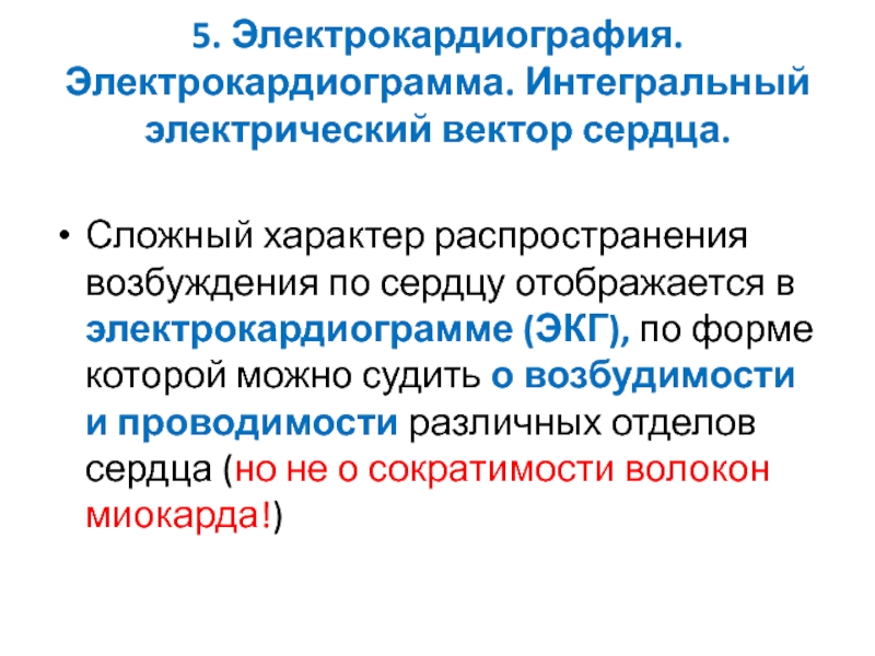 Слайд 75 5. Электрокардиография. Электрокардиограмма. Интегральный электрический вектор сердца.